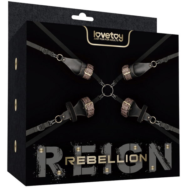 Introducing the Rebellion Reign Under Mattress Restraint from our exquisite collection. Crafted with durability in mind, this set features PU wrist cuffs and ankle cuffs, complete with four adjustable nylon straps that can be effortlessly installed beneath your bed or mattress. Ideal for beds without posts, it's versatile enough to be used on sofas or any large rectangular furniture, allowing you to explore different positions and indulge in your desires.